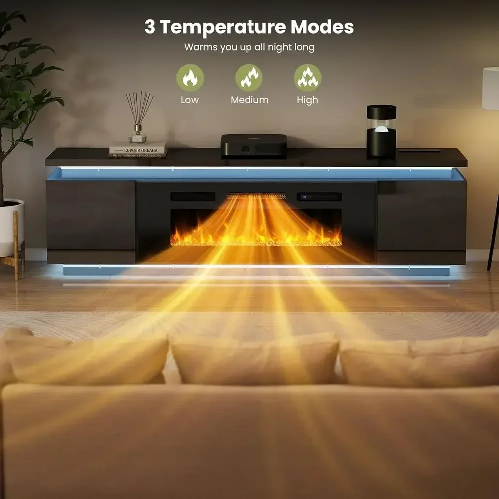 Black Entertainment Center Stand for 85 TVs with 40″ Fireplaces And 4 AC Outlets Modern Living Room Furniture Customized