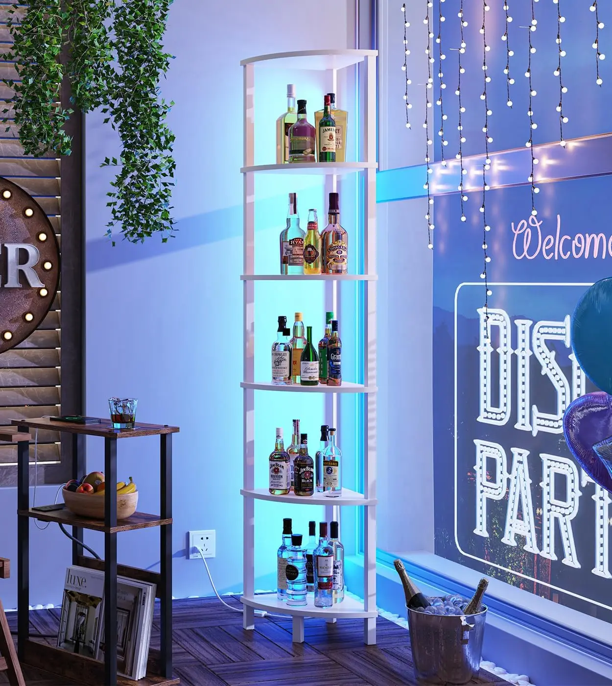 [Corner Stand with LED Lights] Elevate your room's ambiance with our sleek corner stand, featuring integrated LED lights that cast a warm glow, perfect for creating a cozy atmosphere or highlighting your favorite decor.