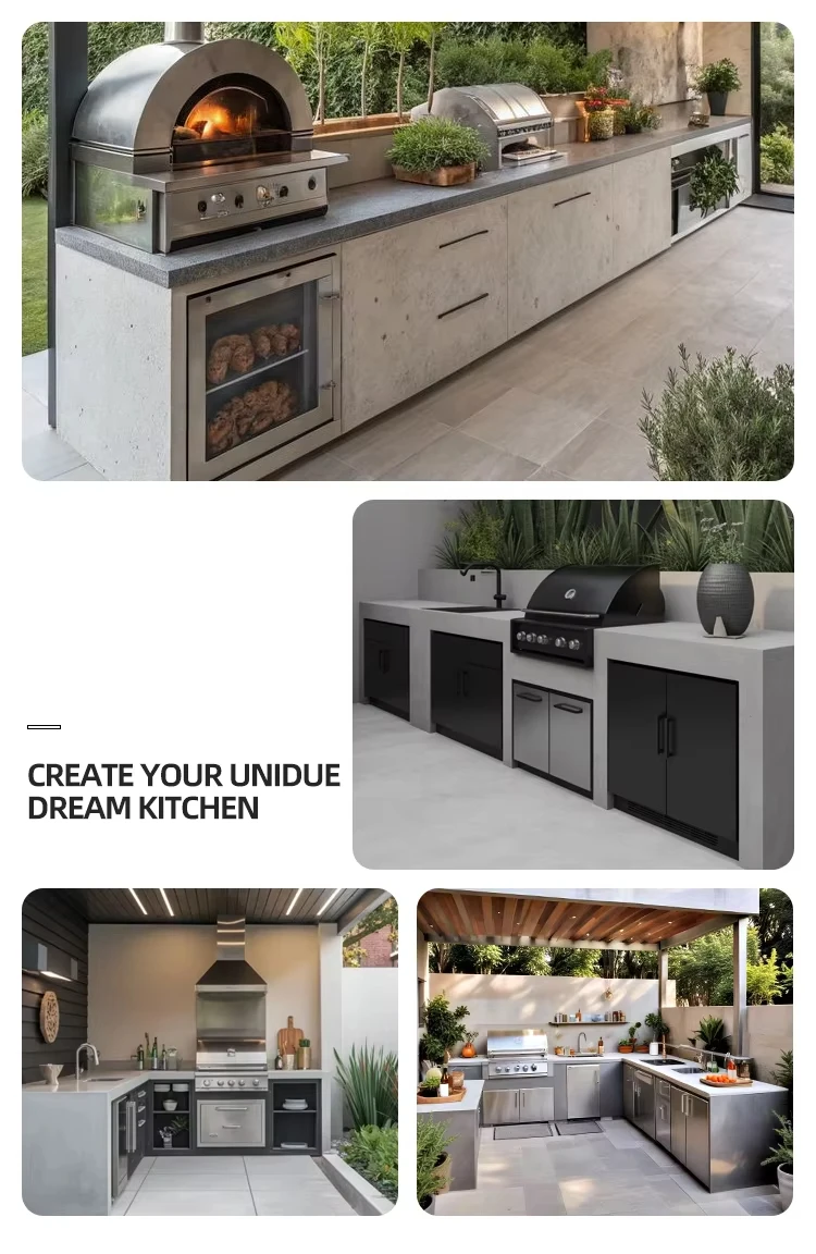 Outdoor kitchens are customized according to customer needs. The price shown is for a customized design. Please send your requirements (size, included functions) to the seller to obtain a complete quote.