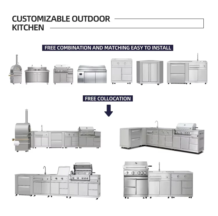 Custom outdoor kitchen Cabinet BBQ grill Oven and Bar Furniture House garden Stainless Steel