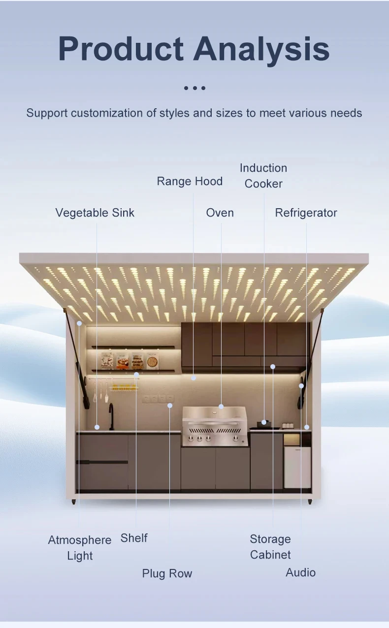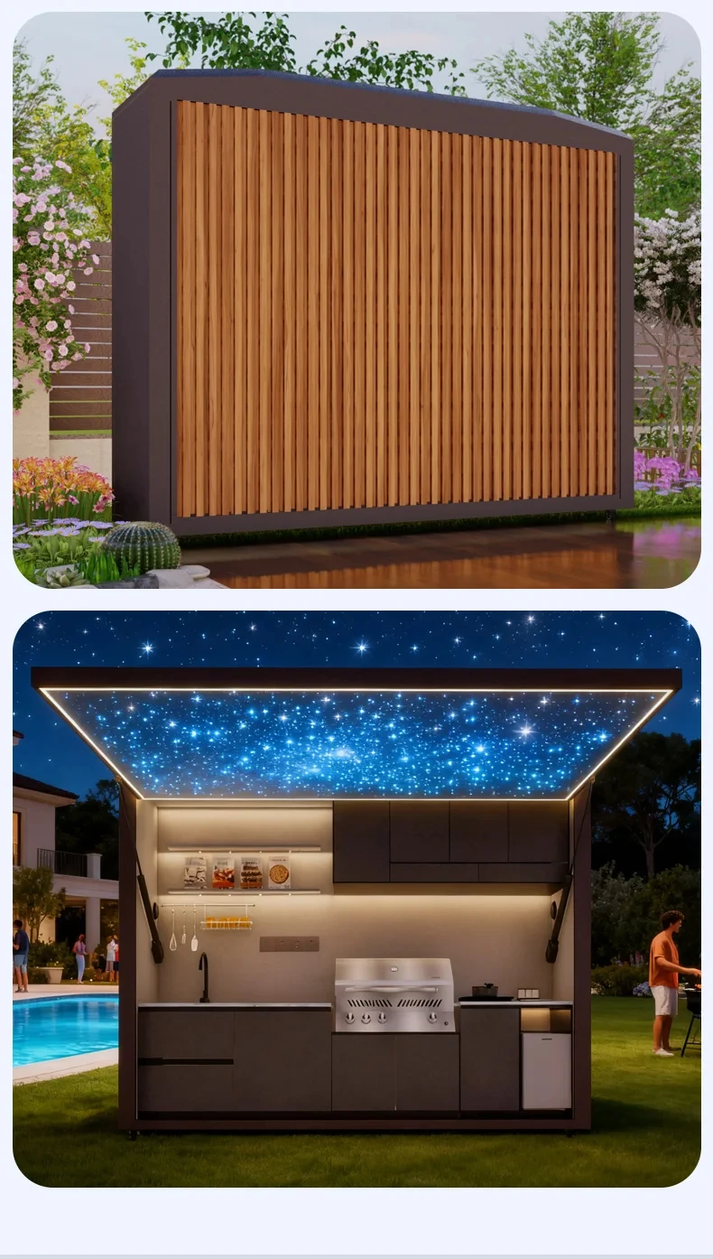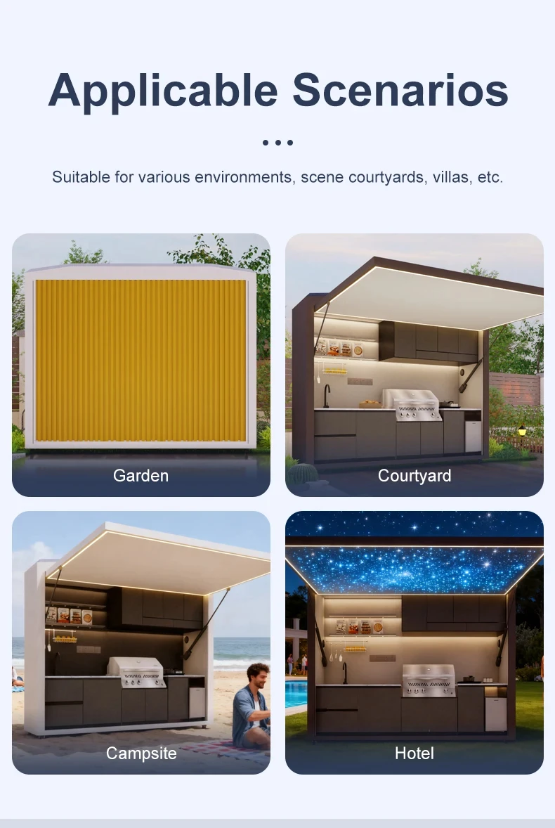 Outdoor kitchens are customized according to customer needs. The price shown is for a customized design. Please send your requirements (size, included functions) to the seller to obtain a complete quote.