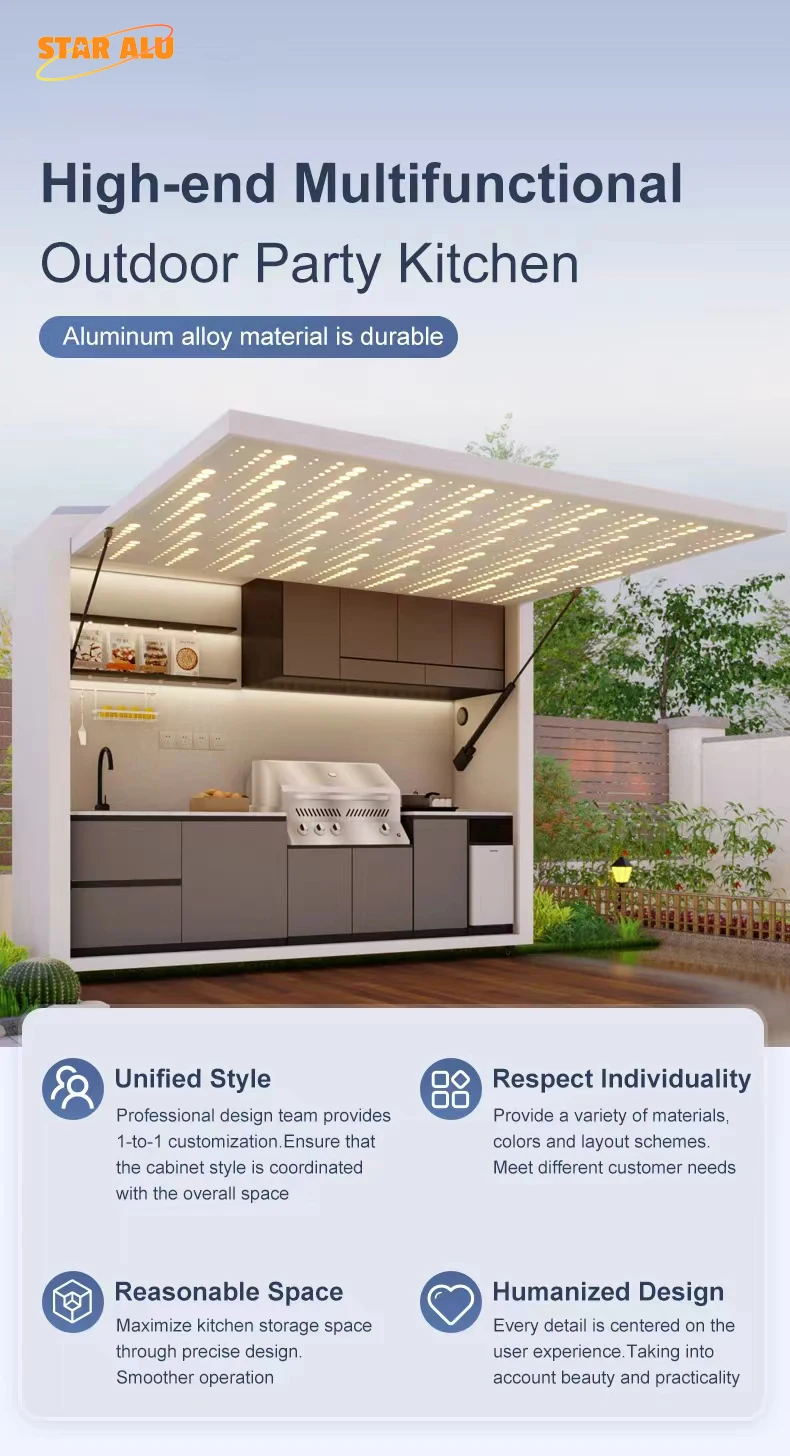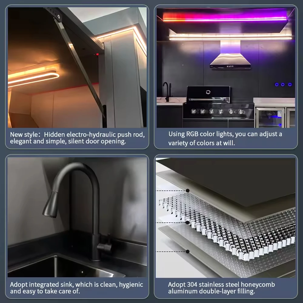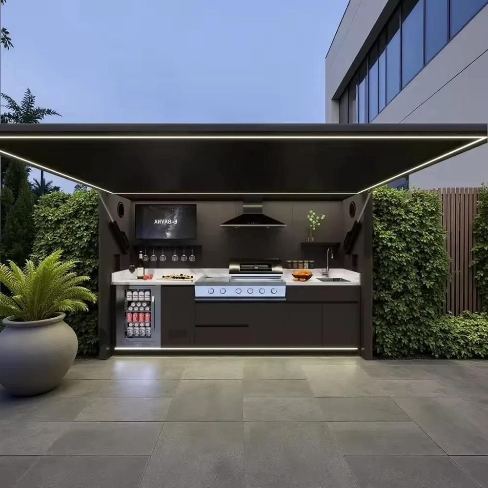 Customized Garden Kitchen with Modular Cabinets and Grill Island Outdoor Kitchen Cabinets Aluminum casing LED light