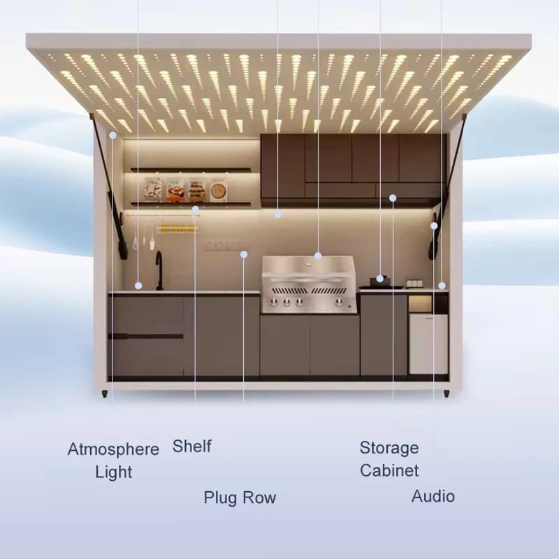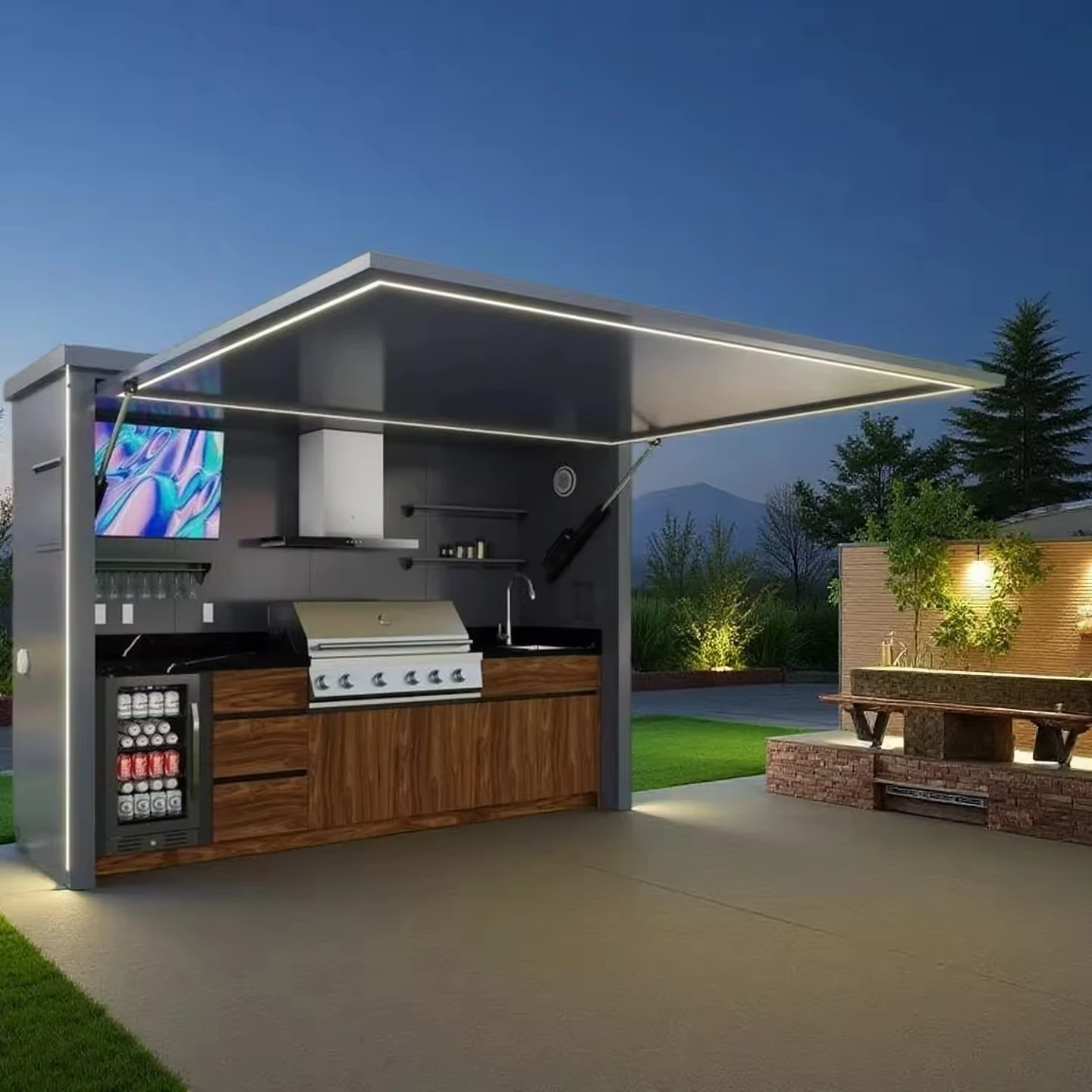 Garden Kitchen with Modular Cabinets and Grill Island Outdoor Kitchen Cabinets Aluminum casing LED Custom kitchenware