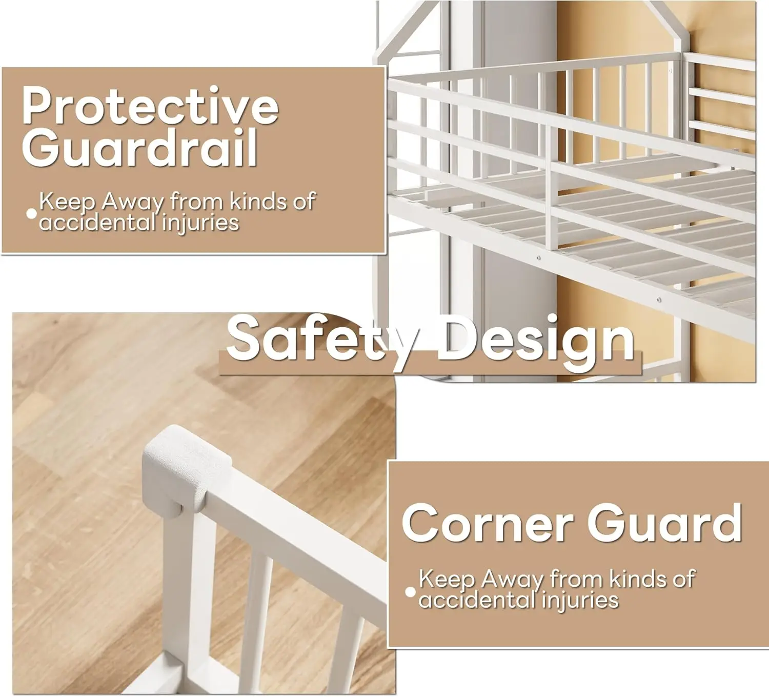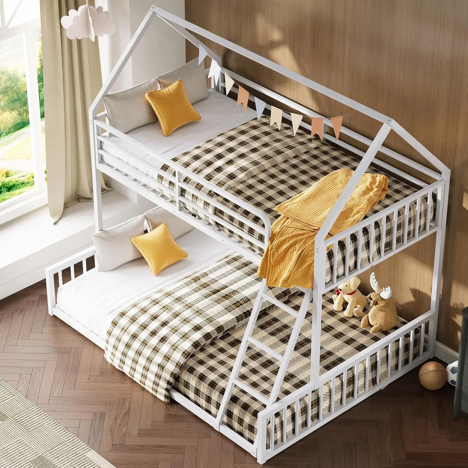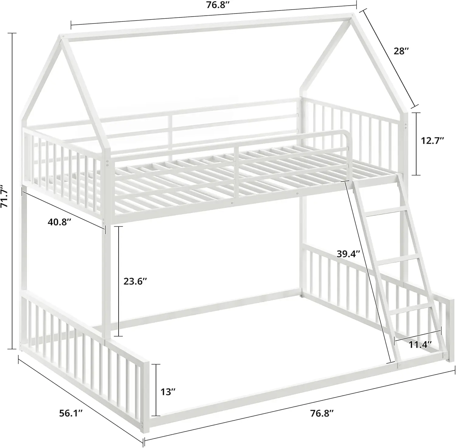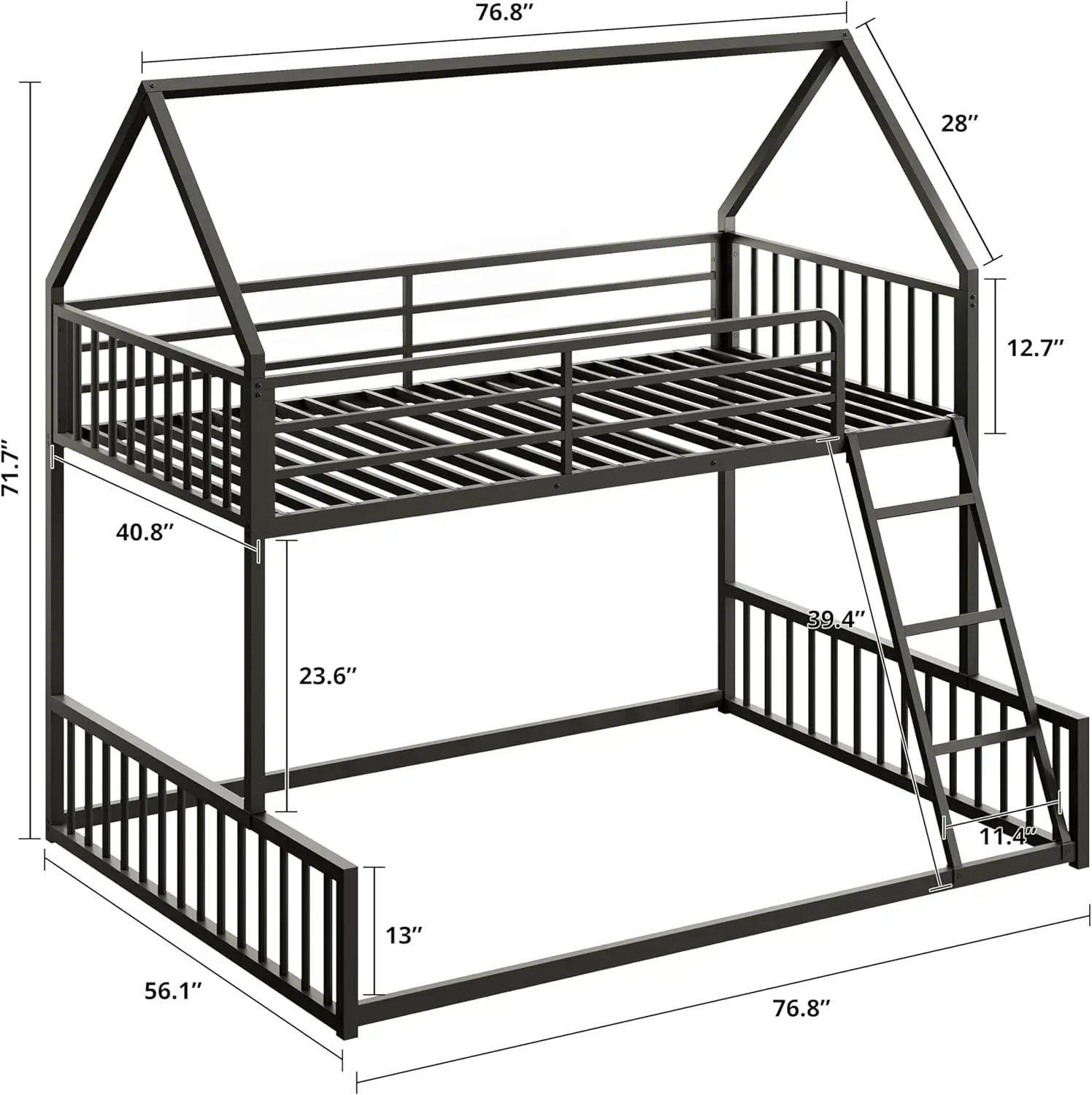 LIKIMIO Bunk Bed Twin Over Full Size,House Shaped with Metal Slats Support No Box Spring Needed Space Saving for Bedroom & Dorm