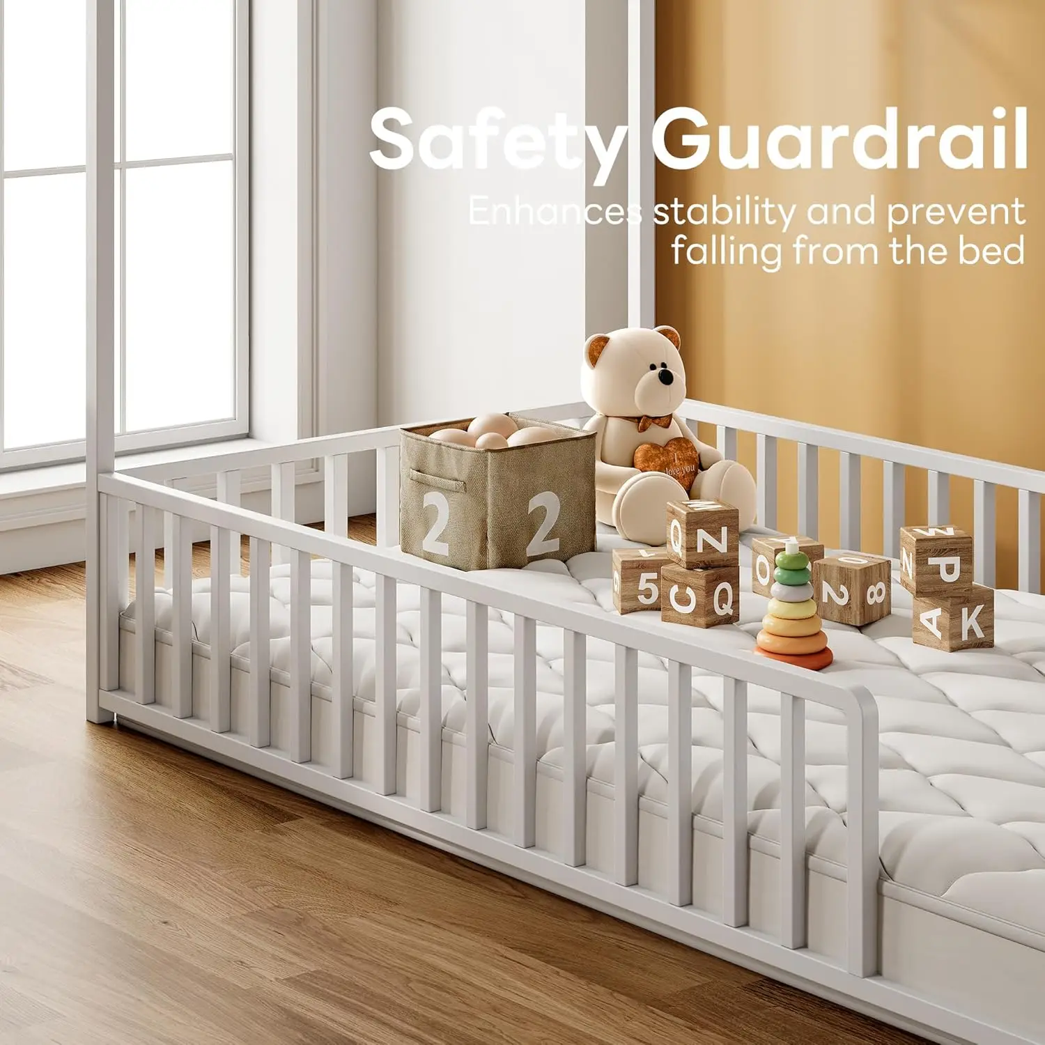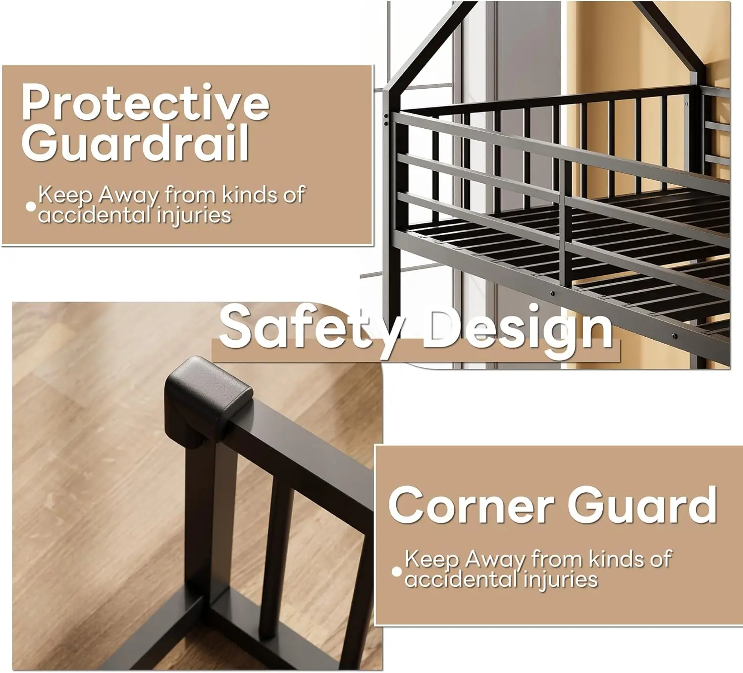 Sturdy and Durable: This bunk bed is made of a sturdy metal frame, ensuring its durability and reliability in your bedroom. The upper bed is equipped with a high guardrail for extra safety. Upper Bed Weight Capacity: 350LBS, Bottom Bed Weight Capacity: 450LBS, giving you peace of mind
