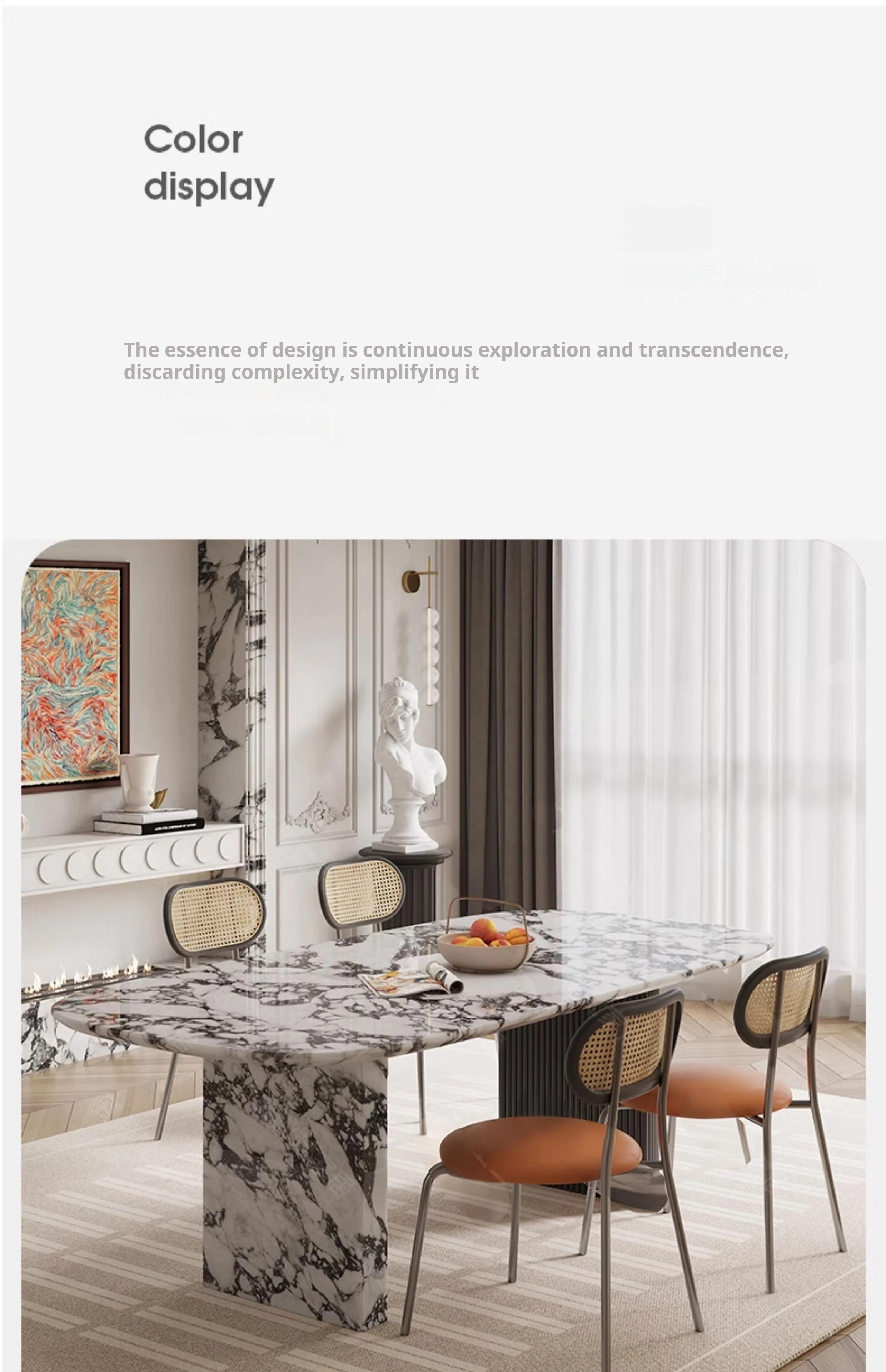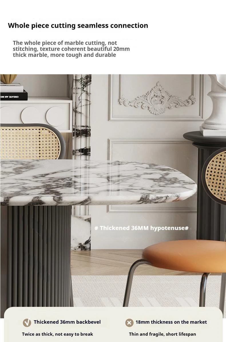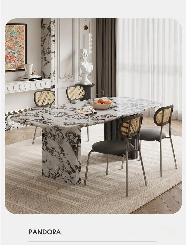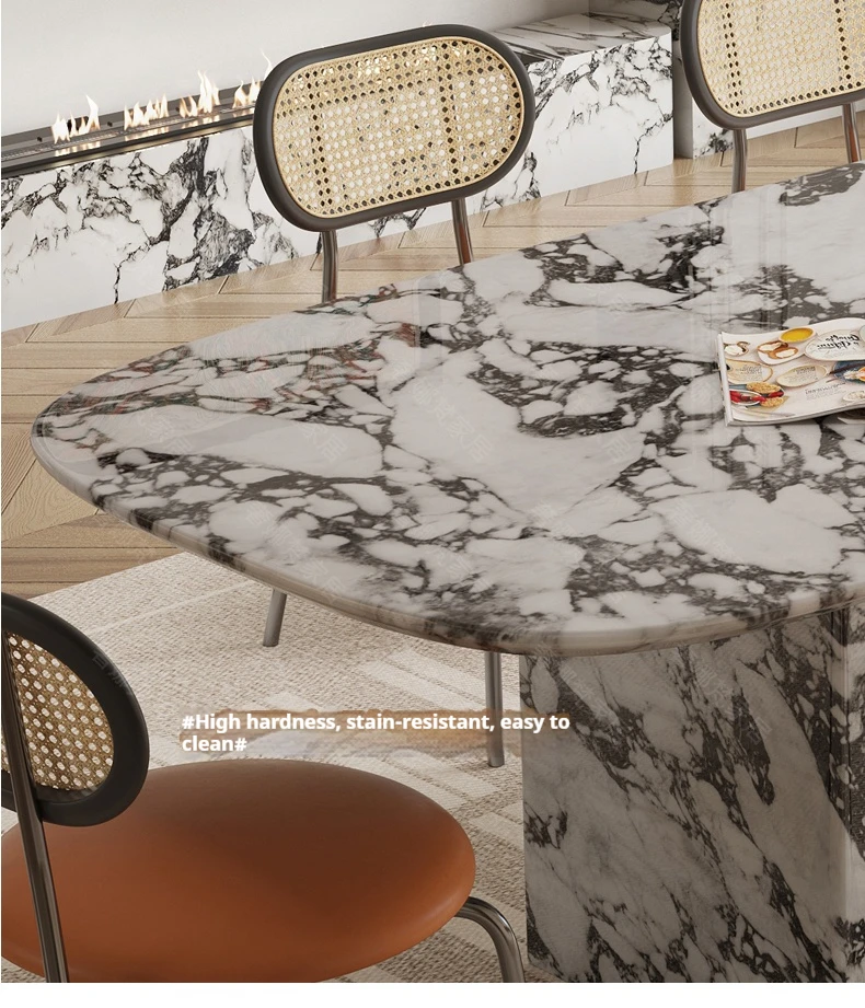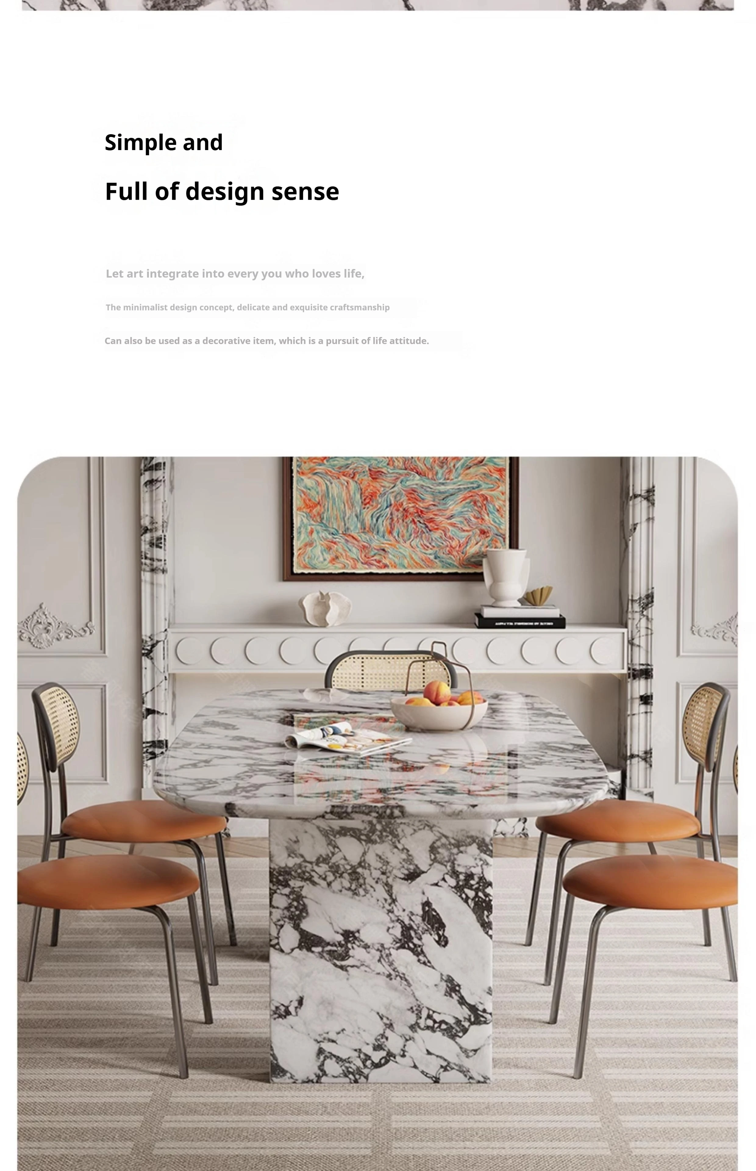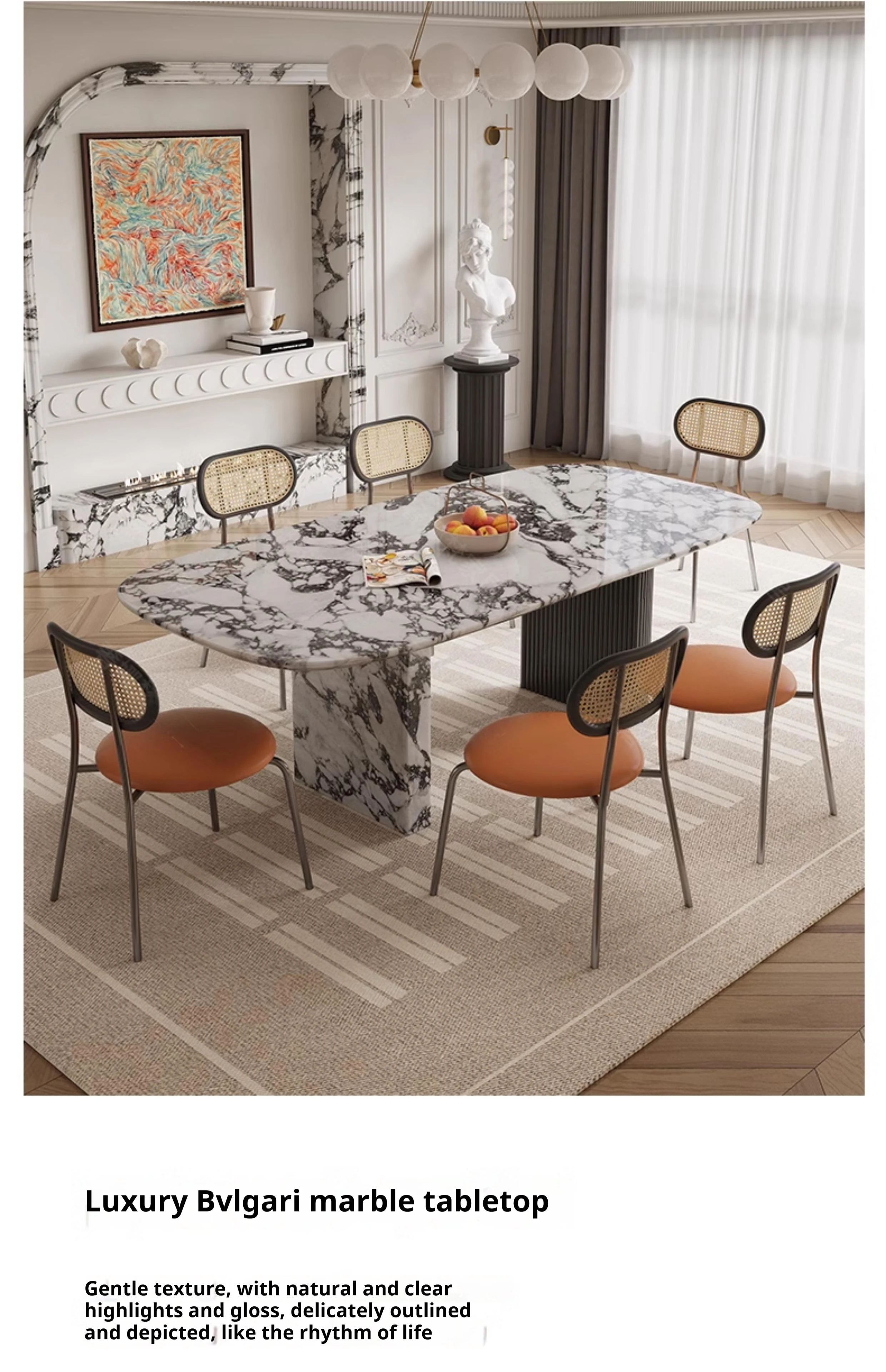 Luxury French Rectangle Marble Table, Cream Aesthetic Designer Villa Furniture, Trendy Natural Stone Dining Table