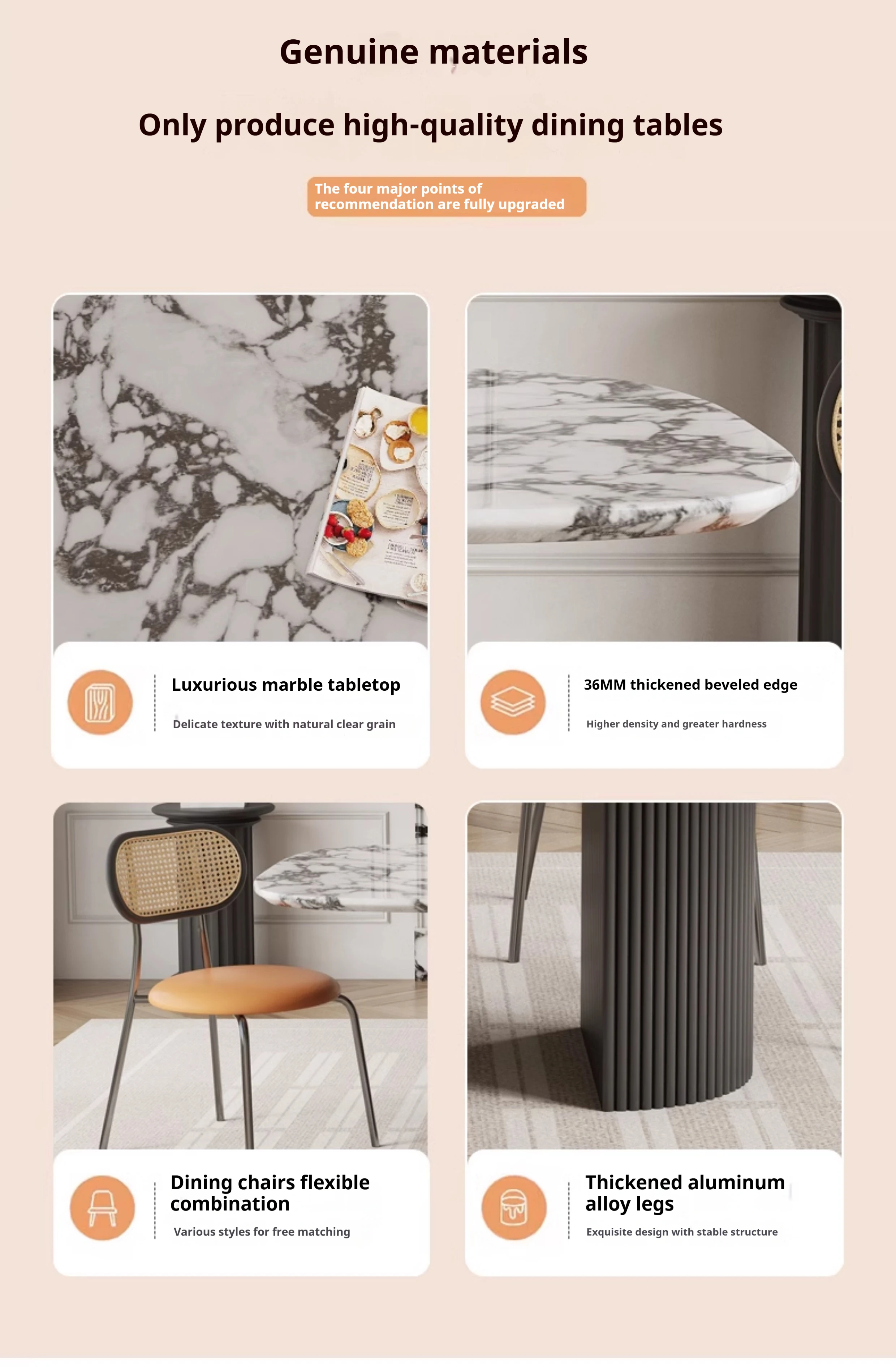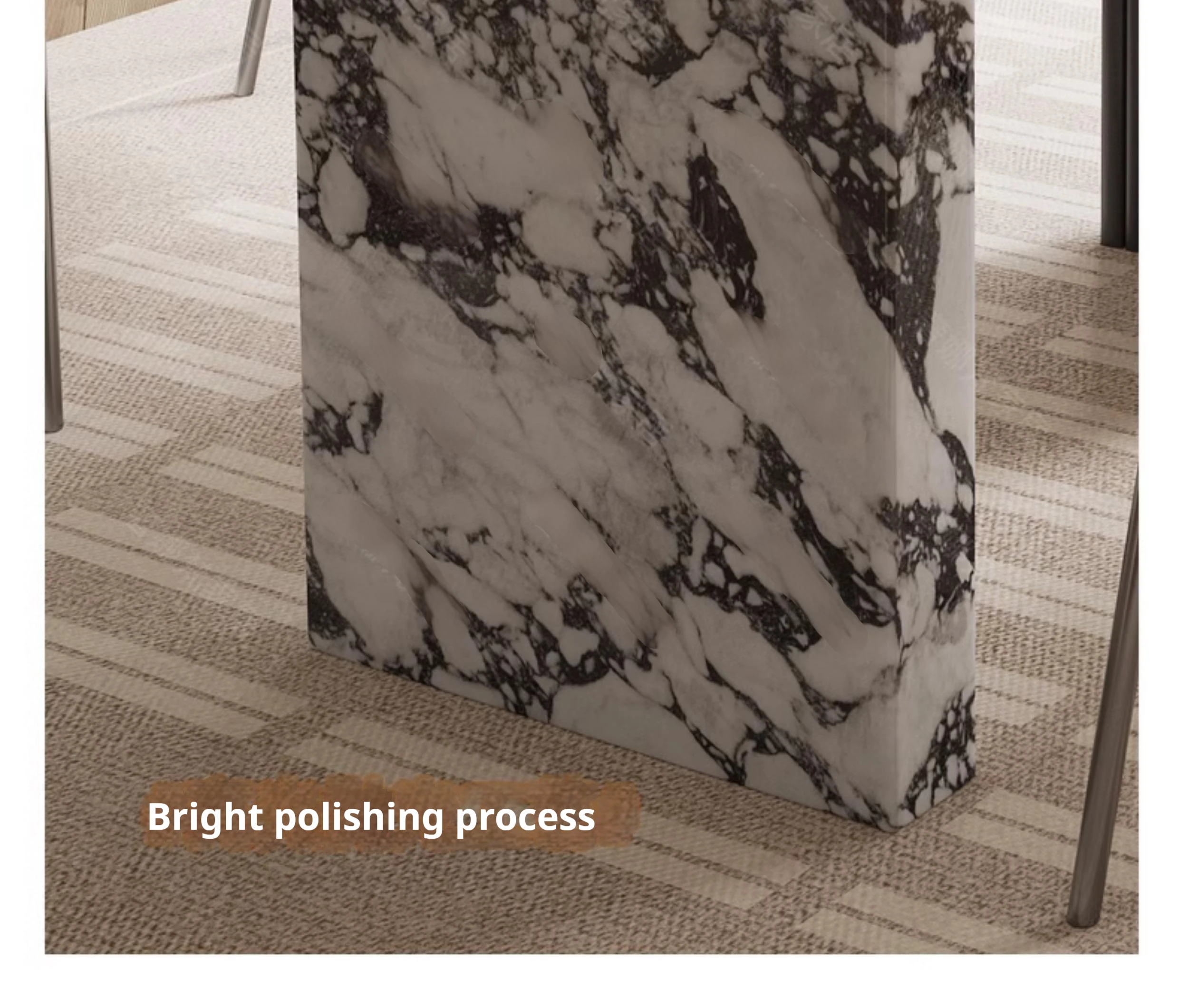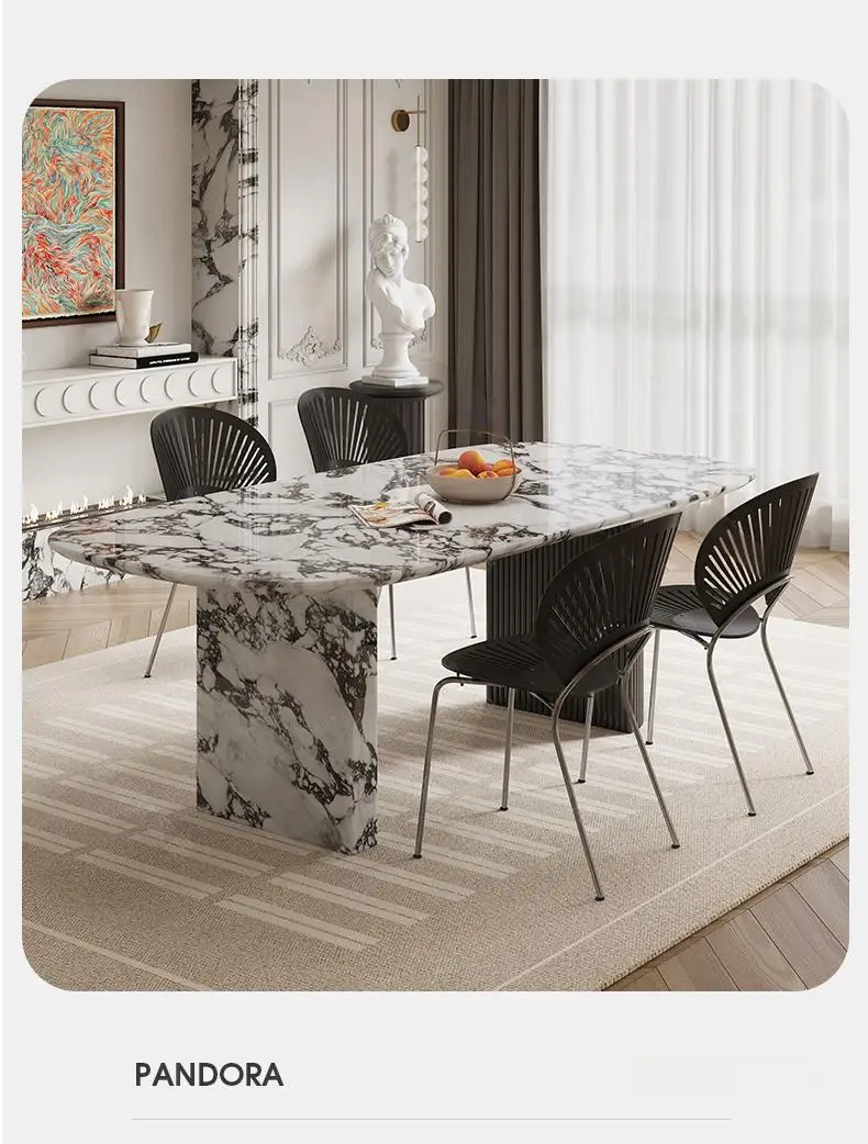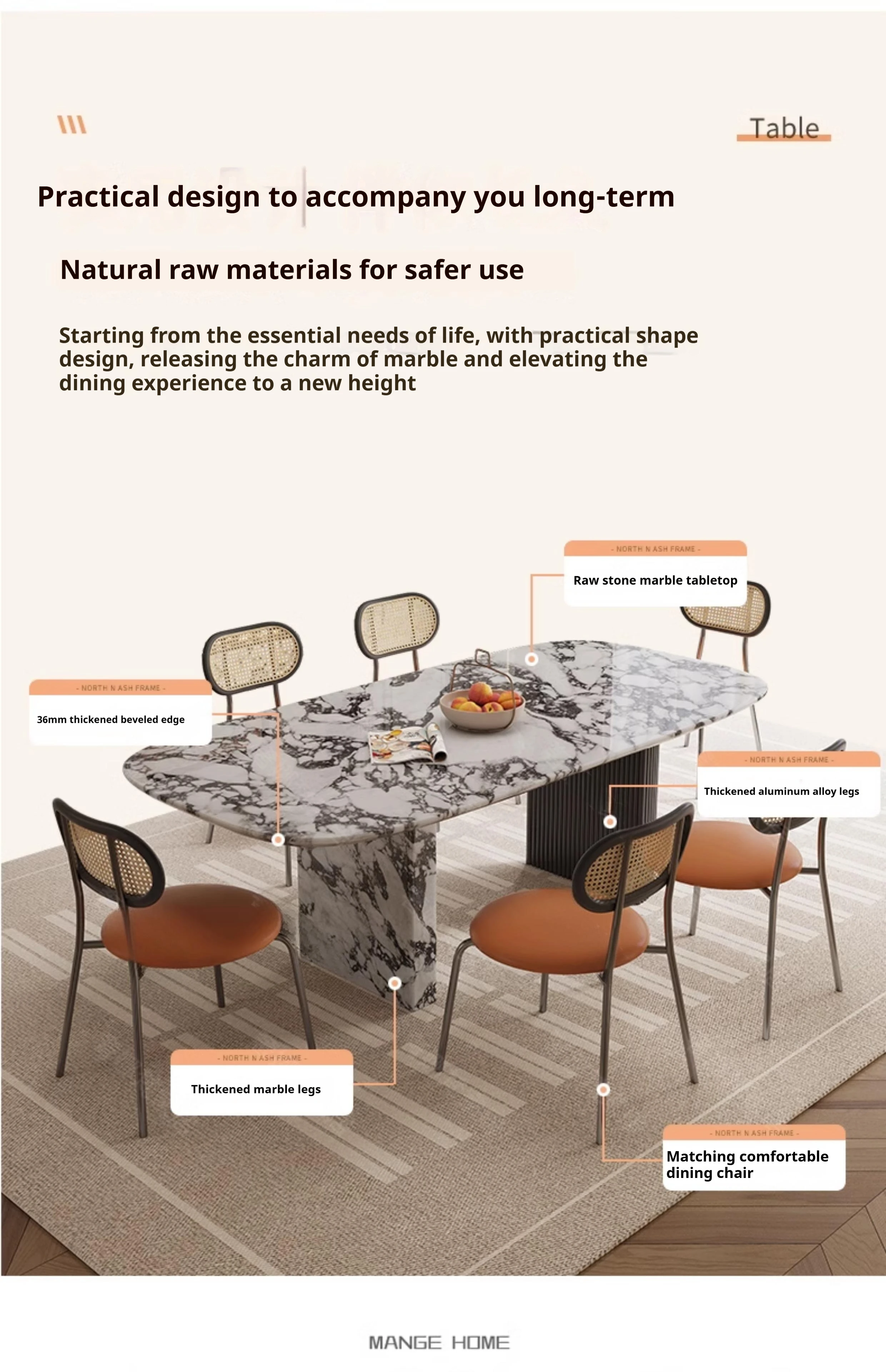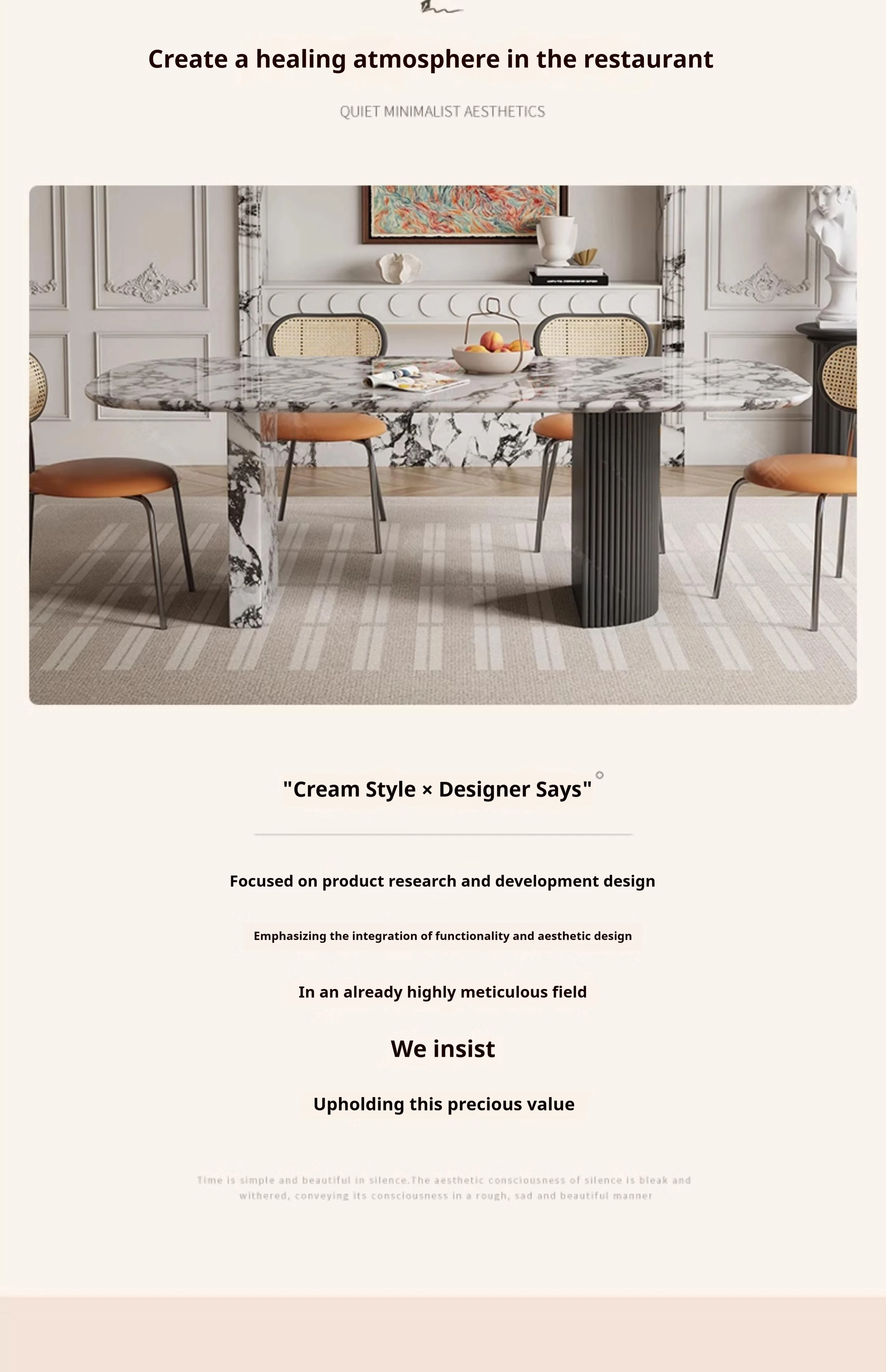 Luxury French Rectangle Marble Table, Cream Aesthetic Designer Villa Furniture, Trendy Natural Stone Dining Table