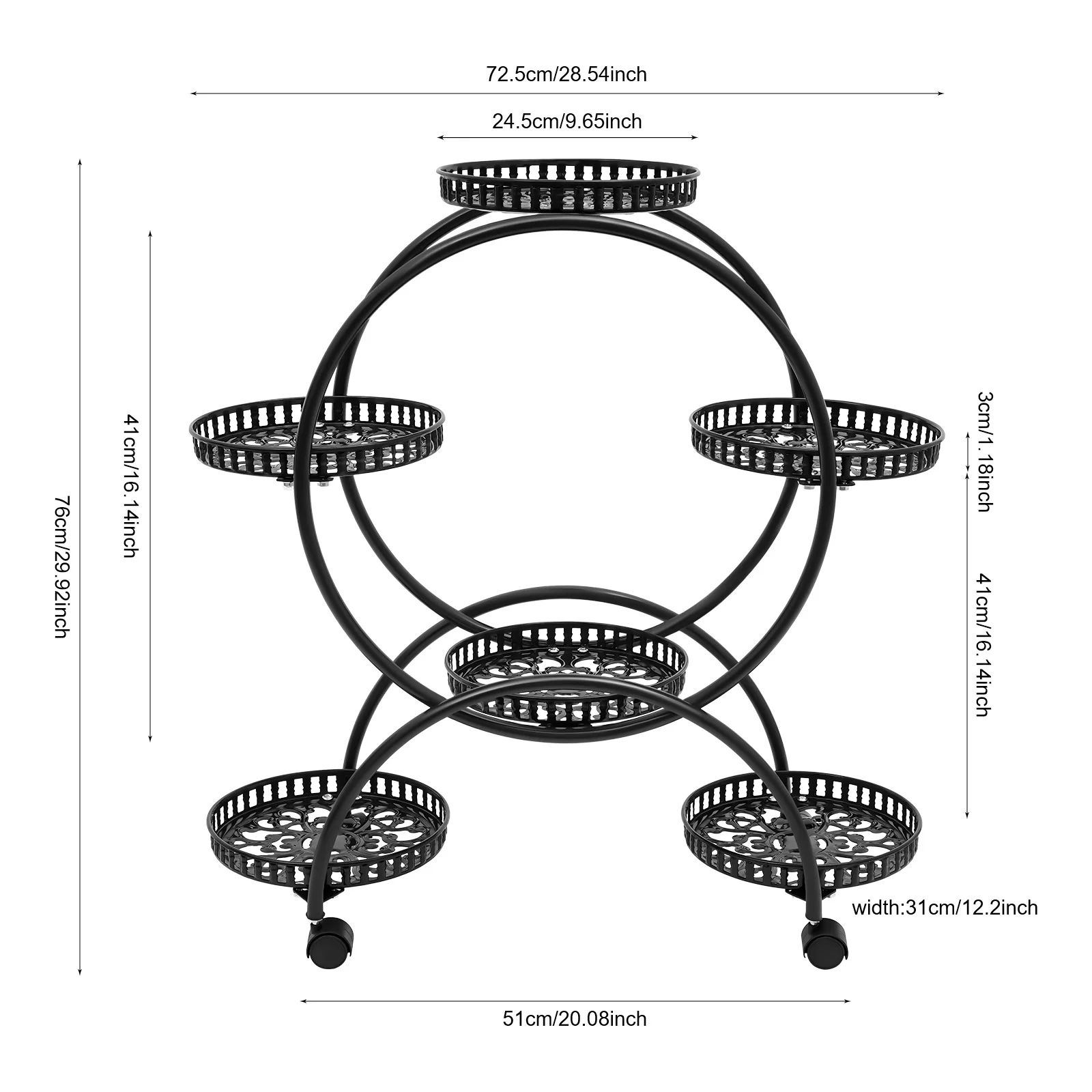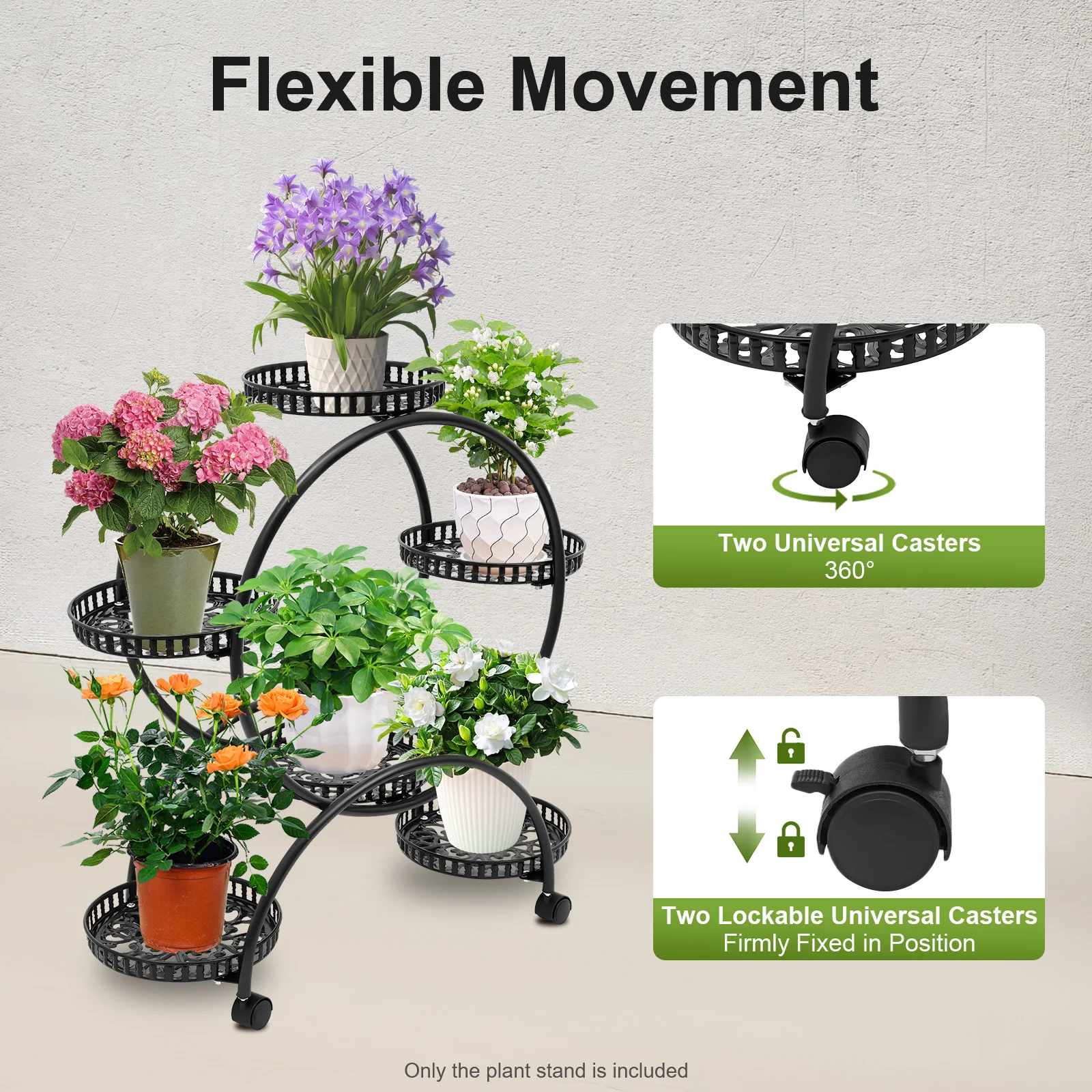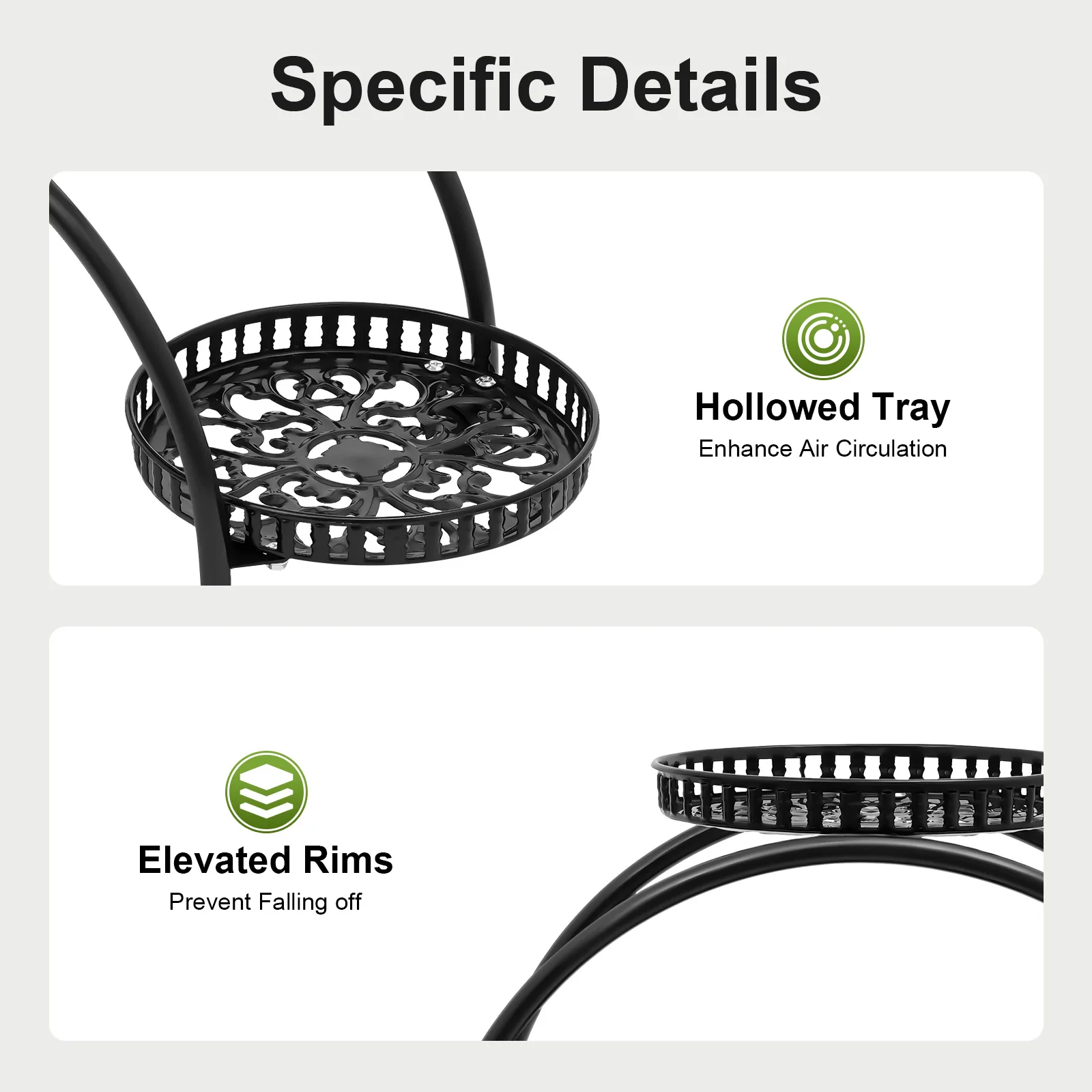 6-Tray Iron Plant Stand Classic Black Flower Display Rack Plant Storage Shelf for Indoor Outdoor Home Garden Balcony Office