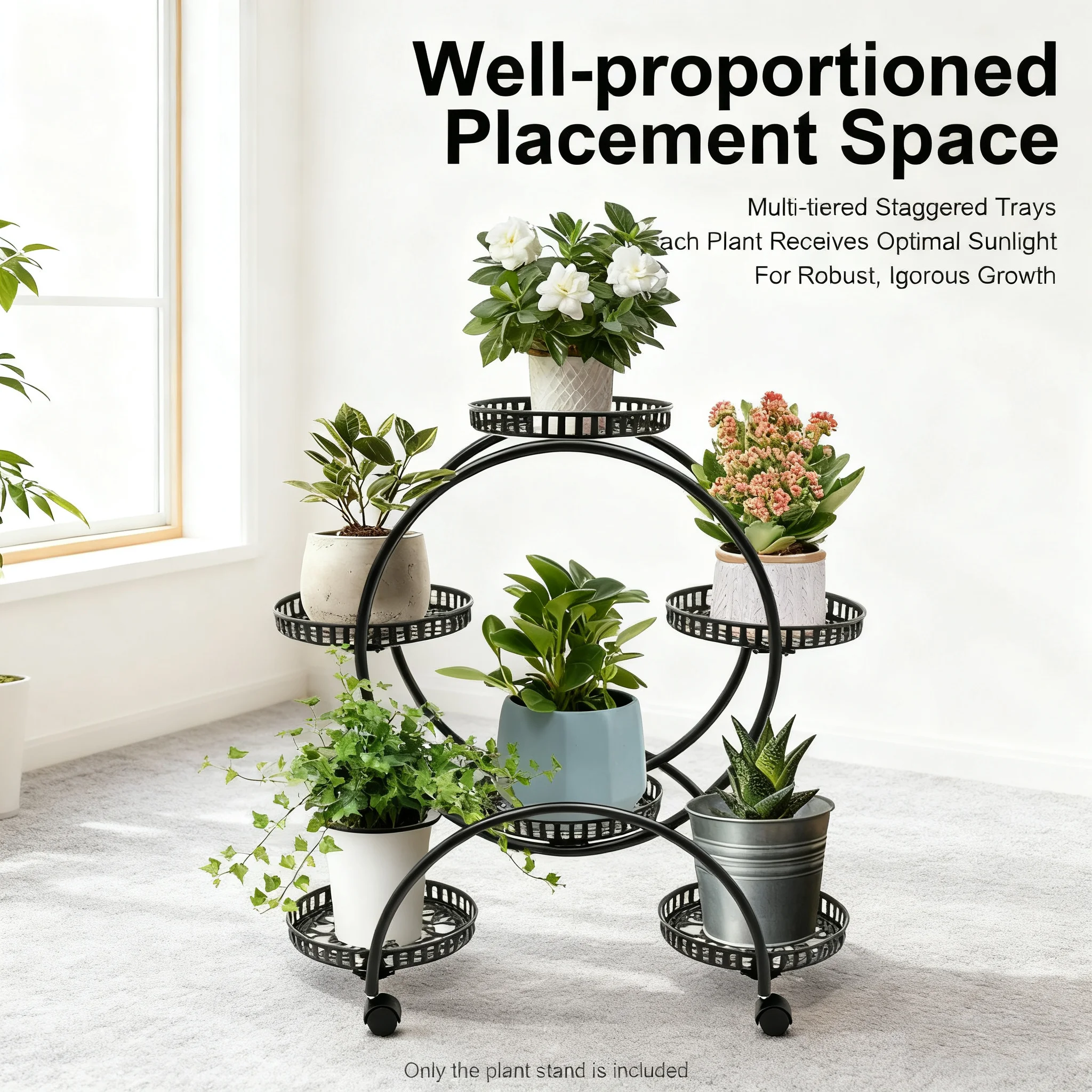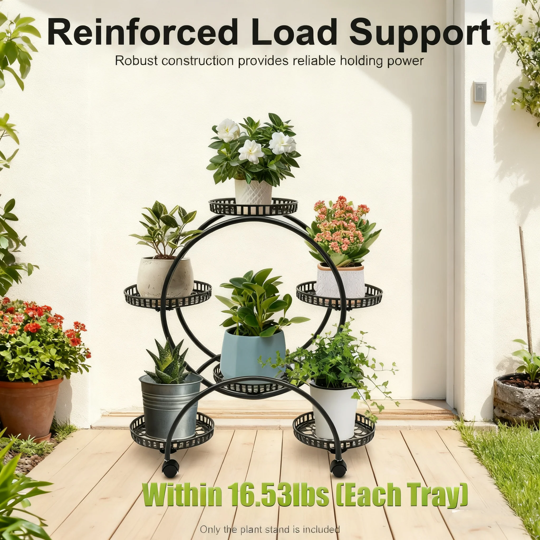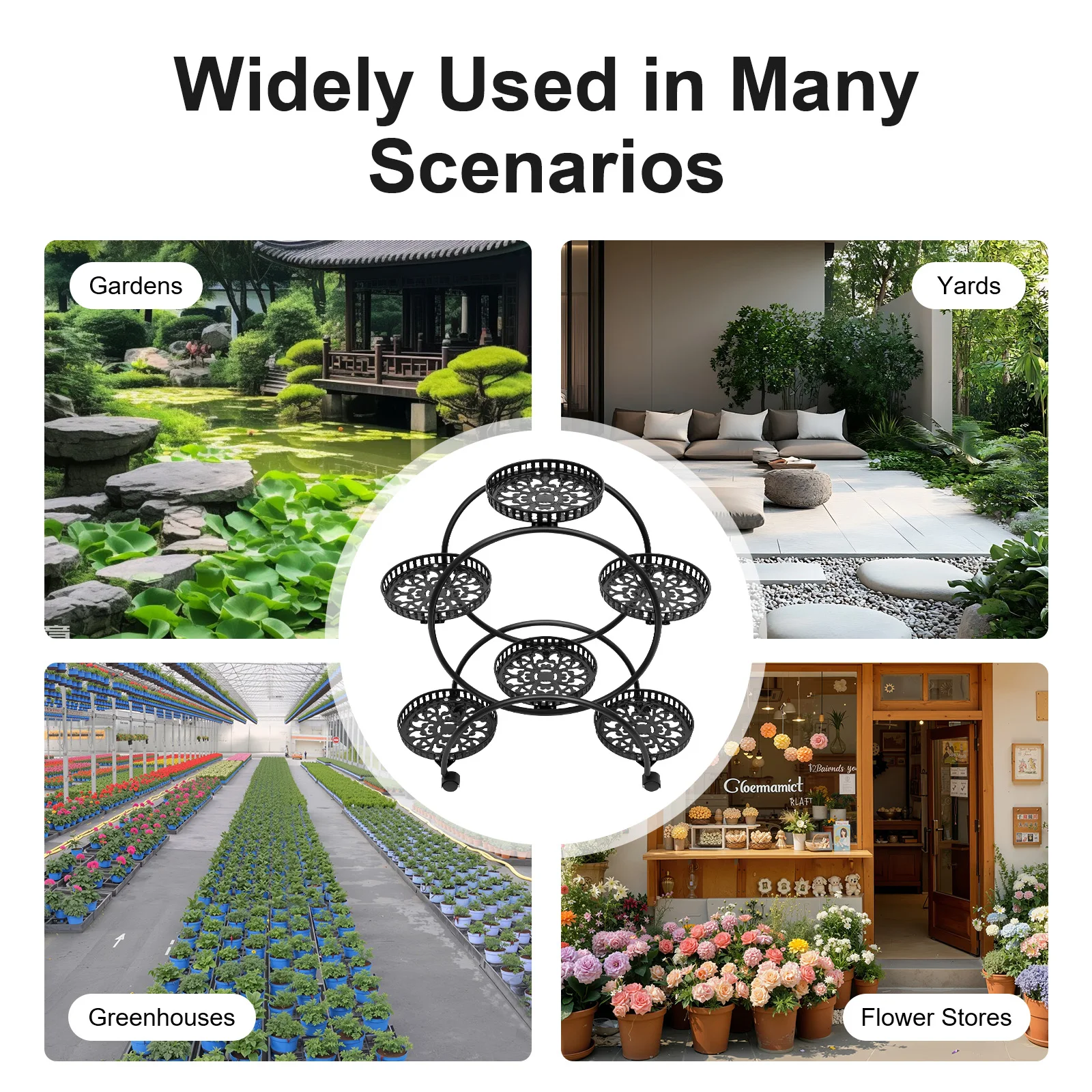 6-Tray Iron Plant Stand Classic Black Flower Display Rack Plant Storage Shelf for Indoor Outdoor Home Garden Balcony Office