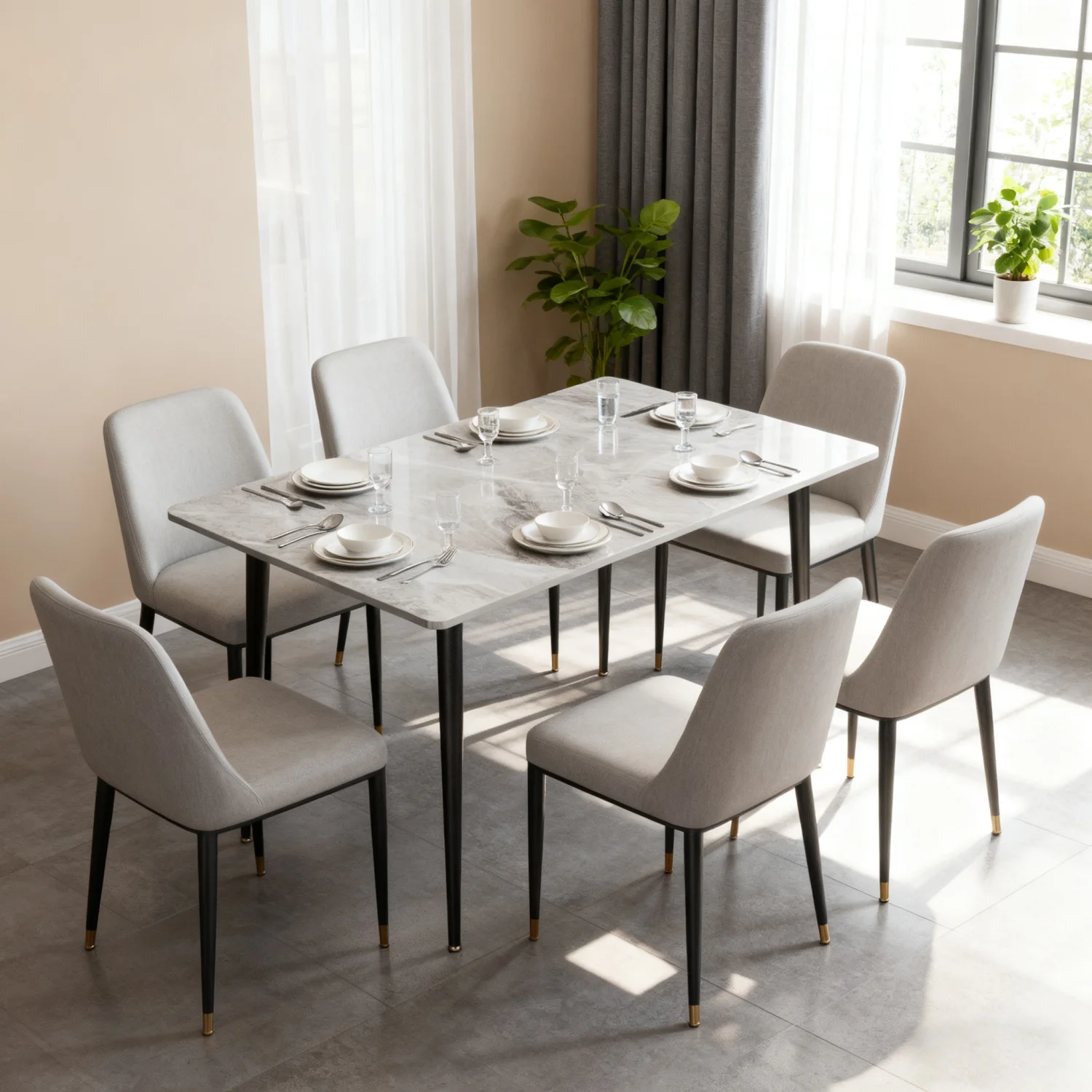 Modern Dining Table for 4-6 People Kitchen Restaurant Dining Room Table Sintered Stone Top Metal Legs No Chairs