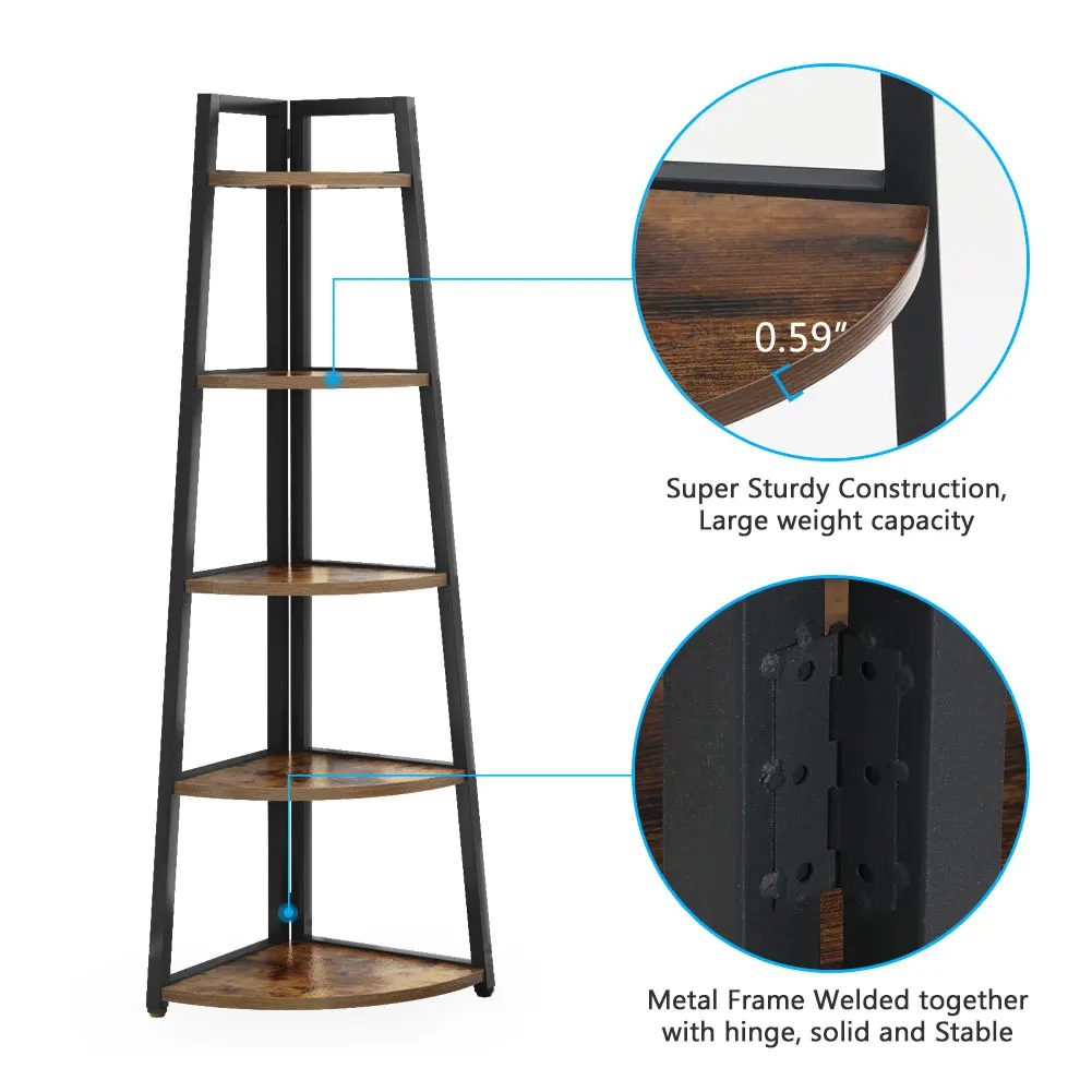 Multifunctional Corner Storage Shelf – This tall shelving unit fits great in any corner of the living room, bedroom, home office, kitchen, hallway, balcony, bathroom, etc., works well as corer stand shelves, small bookshelf, display shelf, plant stand, flower rack for limited space.