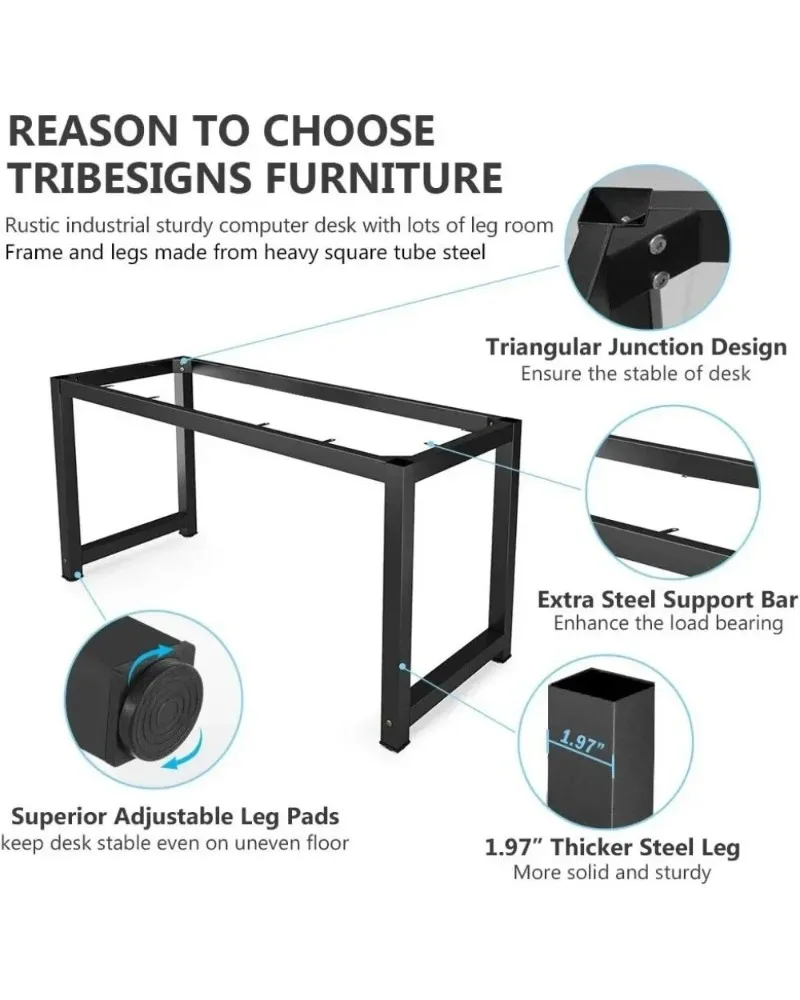 This modern and simple desk is designed for your office or home workspace, featuring metal legs and adjustable leg pads to ensure stability on uneven floors. The desk offers a spacious 23.6-inch wide desktop, providing ample room for your computer, monitor, printer, and other office essentials. The leg room underneath measures 42.9 inches, making it comfortable for tall individuals and suitable for use in dorm rooms. Constructed from 0.98-inch thick laminated MDF, the desk is waterproof, scratch-resistant, and easy to clean. The computer frame is made of heavy-duty powder-coated steel, offering both stability and durability, with a strong 1.57-inch by 1.57-inch width that can support heavy items. Assembly is straightforward, requiring only the installation of the four legs and two leg bars with a hex key, a process that takes less than 15 minutes. The desk has dimensions of 47.2 inches in length, 23.6 inches in width, and 29.2 inches in height, weighing 52.9 pounds with a capacity of 900 pounds. We offer an 18-month warranty and friendly customer service for your peace of mind.