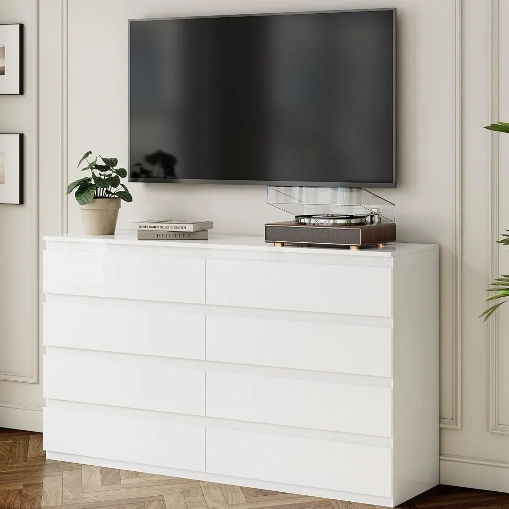 - Versatile Wide Dresser: The 8-drawer dresser’s minimalist style fits any home setting, from bedrooms and living rooms to hallways and entryways. It’s perfect for clothing storage or as a makeup cabinet.